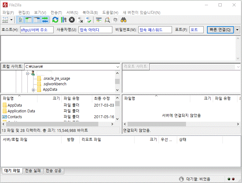 서버에 파일을 업로드하기 위해서는 일반적으로 FTP를 많이 사용합니다.