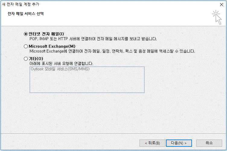 2) 새 전자 메일 서비스 선택
