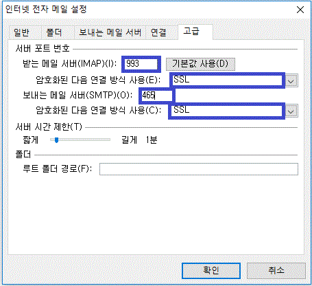 - 접속 포트 : 993